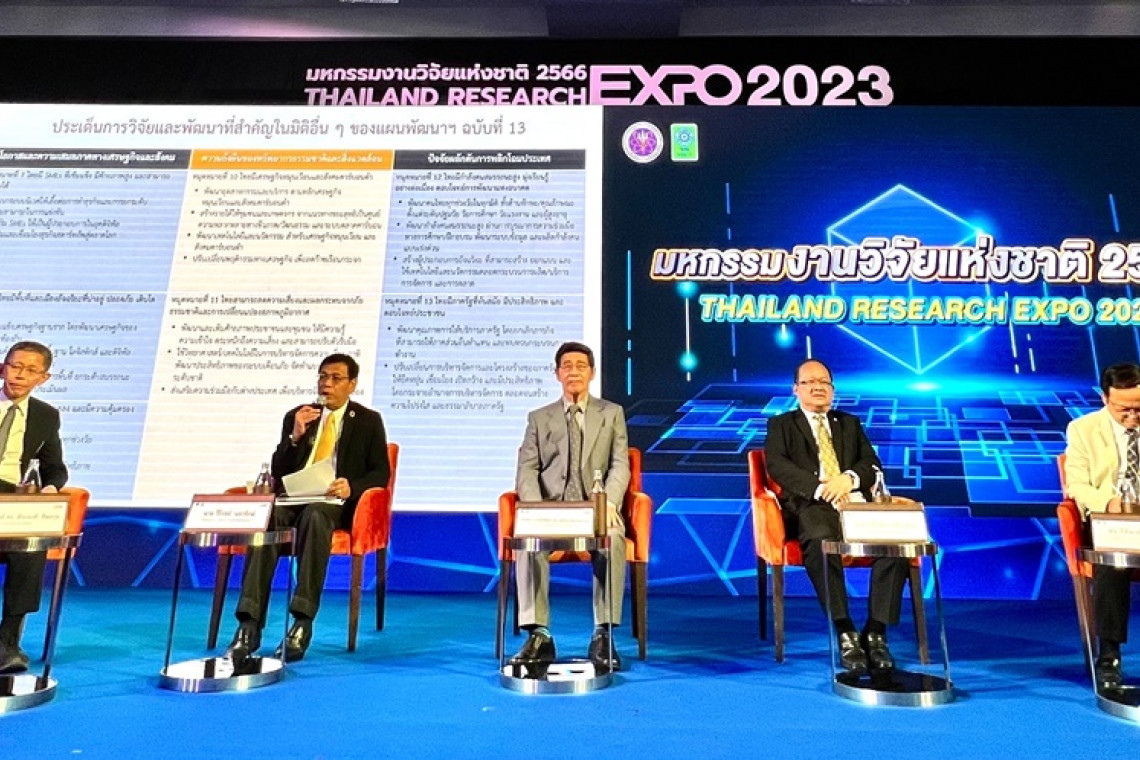 สำนักงานการวิจัยแห่งชาติ (วช.) กระทรวงการอุดมศึกษา วิทยาศาสตร์ วิจัยและนวัตกรรม ร่วมกับหน่วยงานเครือข่ายในระบบวิจัยทั่วประเทศ จัดงาน “มหกรรมงานวิจัยแห่งชาติ 2566 : Thailand Research Expo 2023” ภายใต้แนวคิด “ขับเคลื่อนงานวิจัย สู่เศรษฐกิจยุคใหม่ สร้างไทยยั่งยืน” ระหว่างวันที่ 7-11 สิงหาคม 2566 ณ ห้องประชุมชั้น 22-23 โรงแรมเซ็นทาราแกรนด์และบางกอกคอนเวนชันเซ็นเตอร์ เซ็นทรัลเวิลด์ กรุงเทพฯ