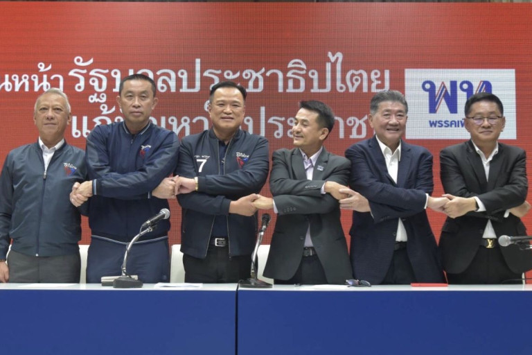 เมื่อวันที่ 8 ส.ค.66 รายงานข่าวจากพรรคเพื่อไทย (พท.) แจ้งว่า การจัดตั้งรัฐบาลของ พรรคเพื่อไทย หลังแถลงจับมือกับพรรคภูมิใจไทย ทำให้มี 212 เสียง โดยล่าสุดพรรคเพื่อไทย พร้อมด้วยอีก 5 พรรคการเมือง ประกอบด้วย พรรคประชาชาติ พรรคเสรีรวมไทย พรรคเพื่อไทยรวมพลัง พรรคพลังสังคมใหม่ และพรรคท้องที่ไทย จะร่วมแถลงข่าวในการจัดตั้งรัฐบาลกับพรรคเพื่อไทย ในวันที่ 9 ส.ค. เวลา 12.00 น. ที่อาคารรัฐสภา จากนั้นวันที่ 10 ส.ค. พรรคเพื่อไทยจะแถลงข่าวจัดตั้งรัฐบาล ร่วมกับพรรคชาติไทยพัฒนาที่อาคารรัฐสภาเช่นกัน