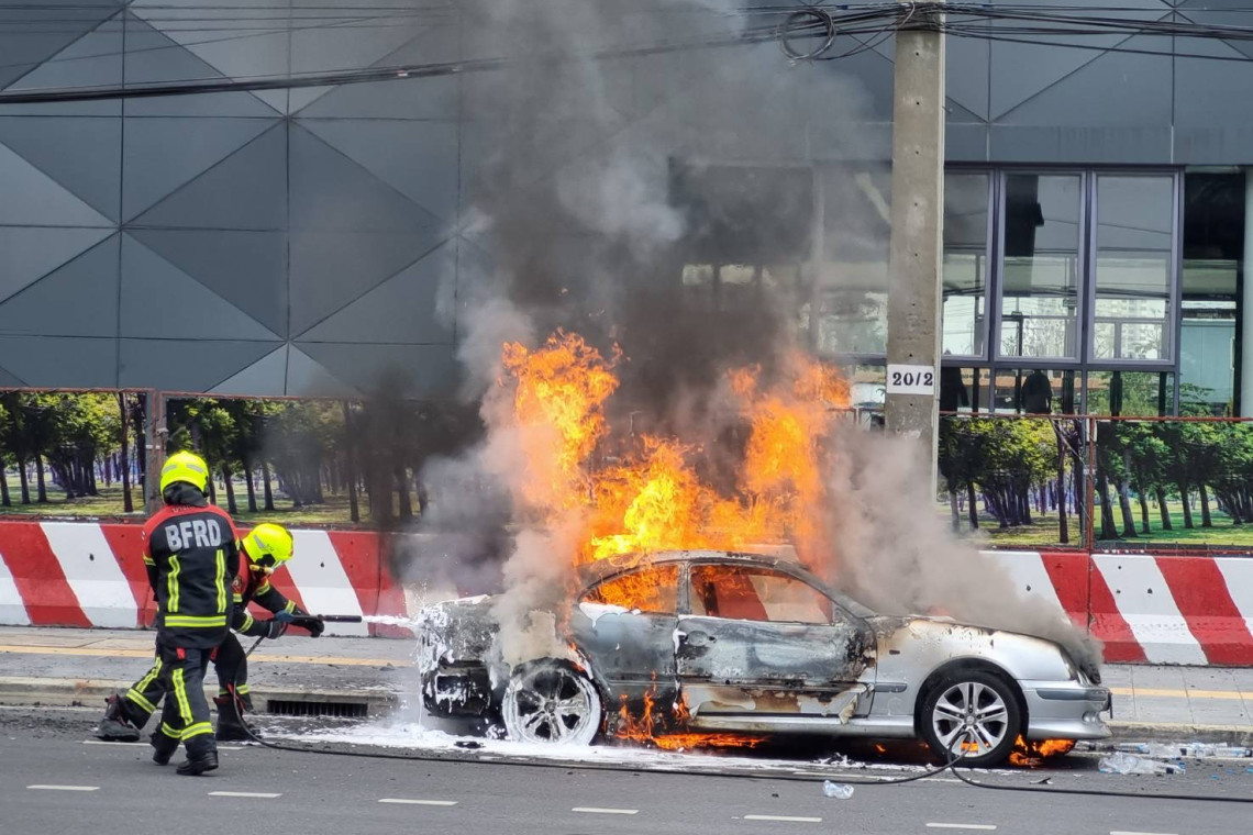 เพลิงกำลังลุกไหม้รถเบนซ์ สีบรอนซ์เงินทะเบียน กรุงเทพมหานคร โดยในระหว่างเพลิงกำลังลุกไหม้อยู่นั้นมีเสียงระเบิดดังขึ้นด้วย เจ้าหน้าที่ทราบว่ารถคันดังกล่าวใช้ระบบน้ำมันและก๊าซ LPG ทำให้เพลิงเผาไหม้ทั้งคัน เจ้าหน้าที่ใช้เวลา 15 นาที จึงสามารถควบคุมเพลิงไว้ได้