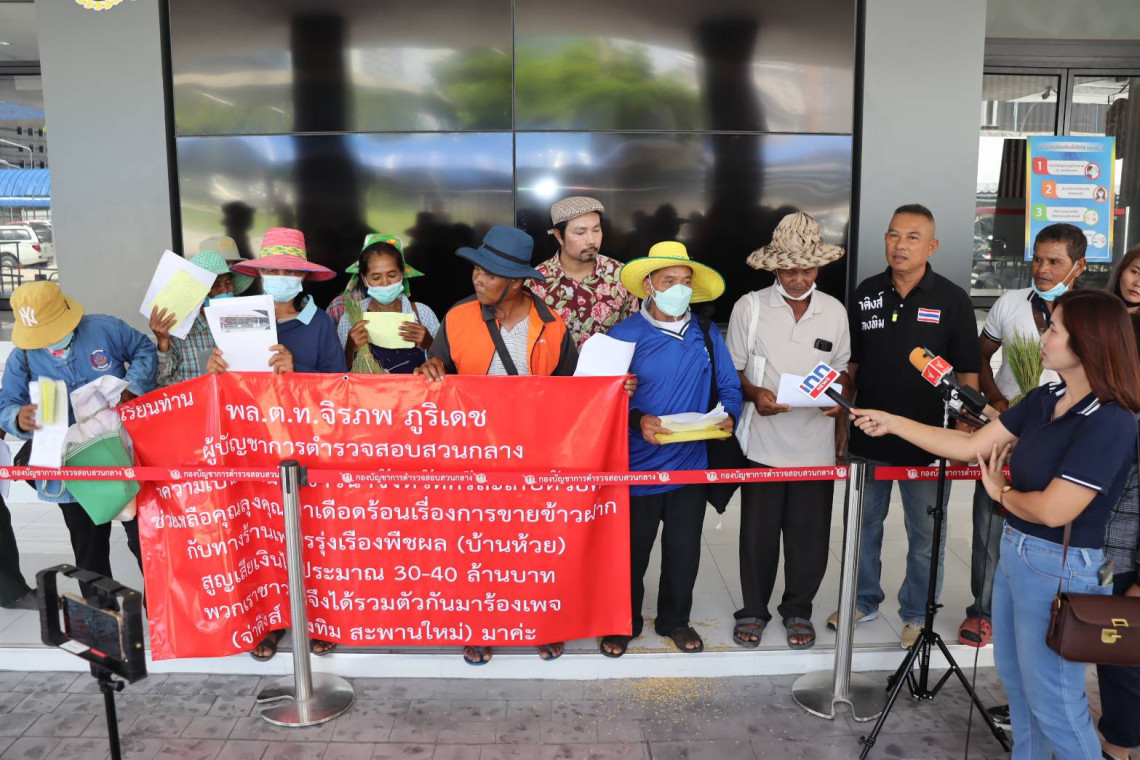 ตัวแทนชาวนา ในฐานะผู้เสียหายรายหนึ่ง ให้ข้อมูลว่า ตนเอง มีข้าวเปลือก 40 ตัน ได้นำไปฝากขายที่ร้านค้าแห่งนี้ ซึ่งเปิดเป็นบริษัทรับซื้อข้าวเปลือกจากชาวนา เพื่อนำไปส่งขายให้กับโรงสีข้าว โดยทางร้านค้าแห่งนี้ ยื่นข้อเสนอว่า ถ้าหากรับเงินในวันที่ขายข้าวเปลือกจะได้ราคากิโลกรัมละ 8 บาท แต่ถ้ารับเงินในอีก 6 เดือนข้างหน้า จะได้ในราคากิโลกรัมละ 12 บาท ด้วยความที่อยากได้เงินมากขึ้น จึงรับข้อเสนอดังกล่าว แต่เมื่อถึงกำหนดรับเงินติดต่อที่ร้านค้าแห่งนี้ กลับถูกบ่ายเบี่ยง ไม่ยอมจ่ายเงิน อ้างว่า ทางโรงสี ไม่จ่ายเงินให้ จึงไม่มีเงินมาให้ชาวนา ทำให้ตนเองได้รับความเดือดร้อน และไปแจ้งความร้องทุกข์ไว้ที่ สภ.ไพรบึง แต่คดีไม่มีความคืบหน้า จึงรวมตัวกันมาร้องเรียนที่กองปราบปราม