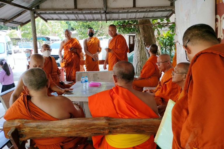 โดยหลวงตาค้อ หมื่นขัน อายุ 65 ปี พรรษา 6 พระลูกสำนักฯ ผู้ได้รับมอบอำนาจให้ดูแลสำนักปฏิบัติธรรมแห่งนี้แทนพระครูไพศาล เจ้าสำนักที่เจ็บป่วยอาพาธจนต้องออกไปรักษาอาการในช่วงหลายเดือนที่ผ่านมา กล่าวว่า พระสงฆ์ทั้ง 3 รูปและสามเณร 5 รูปที่ออกไปเดินบนถนน 304 เมื่อคืนที่ผ่านมานั้น เป็นพระที่บวชมาแล้ว 6 พรรษา 1 รูป และเป็นพระบวชใหม่เมื่อช่วงต้นปียังไม่ได้พรรษา 1 รูปและบวชมาแล้ว 1 พรรษา 1 รูป