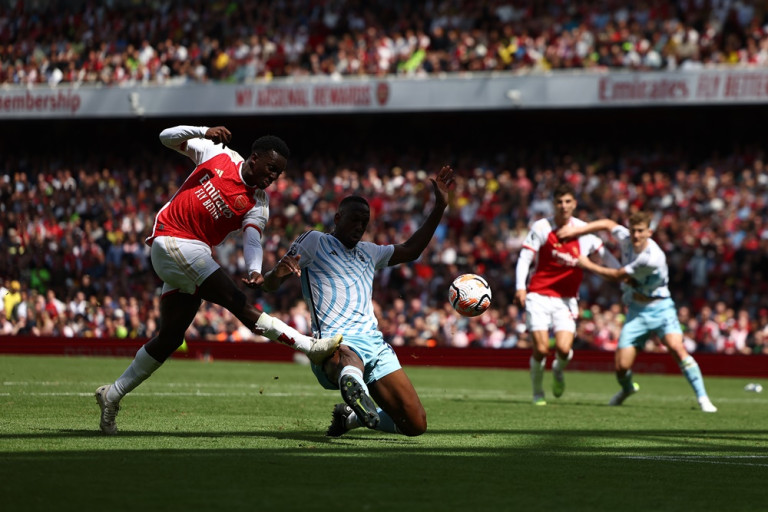 ศึกพรีเมียร์ลีกอังกฤษ เวลา 19.00น. คู่แรกระหว่าง อาร์เซน่อล รองแชมป์เก่า เปิดบ้านพบกับ เจ้าป่า น็อตติ้งแฮม ฟอเรสต์ โดยเริ่มเกมเป็นเจ้าบ้าน ที่ครองบอลอย่างเหนียวแน่น เพื่อหาจังหวะจบสกอร์ ออกนำทีมเยือนให้ได้ กระทั่งผ่านไปสู่นาทีที่ 26 เจ้าบ้านมาออกนำจนได้จาก เอ็นคาเทียร์ จากนั้นในนาทีที่ 32 บูกาโย ซากา มายิงประตูสุดสวย ให้ทีมหนีห่างเป็น 2-0 กระทั่งหมดครึ่งแรก