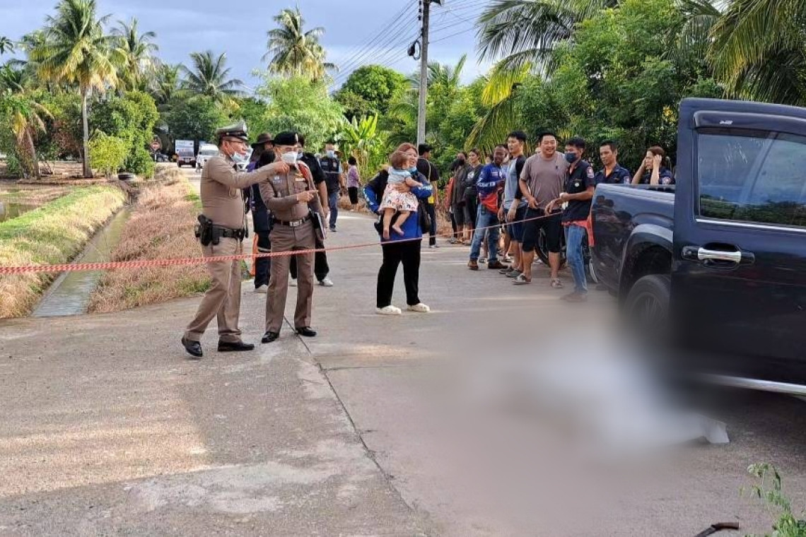 ซึ่งเบื้องต้นทางเจ้าหน้าที่สันนิษฐานว่า ผู้ตายหลังจากปิดร้านได้ขับรถยนต์กระบะเพื่อจะกลับบ้านที่ ม.16 ต.เขาขลุง ระหว่างทางได้ขับรถมาเจอผู้ต้องหา โดยผู้ต้องหาขับรถยนต์มาและพบรอยเบรคลากยาวตรงจุดเกิดเหตุ จากนั้นผู้ต้องหาได้ลงจากรถตรงไปหาผู้ตายที่ด้านคนขับ และเปิดประตูรถได้ก็มีปากเสียกัน ทำให้ผู้ต้องหาที่พกมีดมาจวงแทงผู้ตายในรถ ก่อนผู้ตายลงจากรถมาได้และผู้ต้องหาก็จวงแทงไม่ยั้งจนล้มลงจมกองเลือดจากนั้นได้ขับรถไปมอบตัวที่ป้อมตำรวจในเขตเขาขลุงดังกล่าว