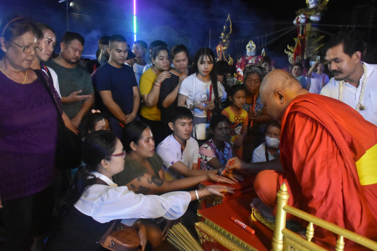บรรดาลูกศิษย์พระอาจารย์สำราญ วัดเกาะพันซาโพธิยาลัย ร่วมพิธีบวงสรวง ท้าวเวสสุวรรณ รับของขลังของดีกันทุกคน พลาดไม่ได้กับเลขปลายประทัด ส่องกันแบบชัดๆ