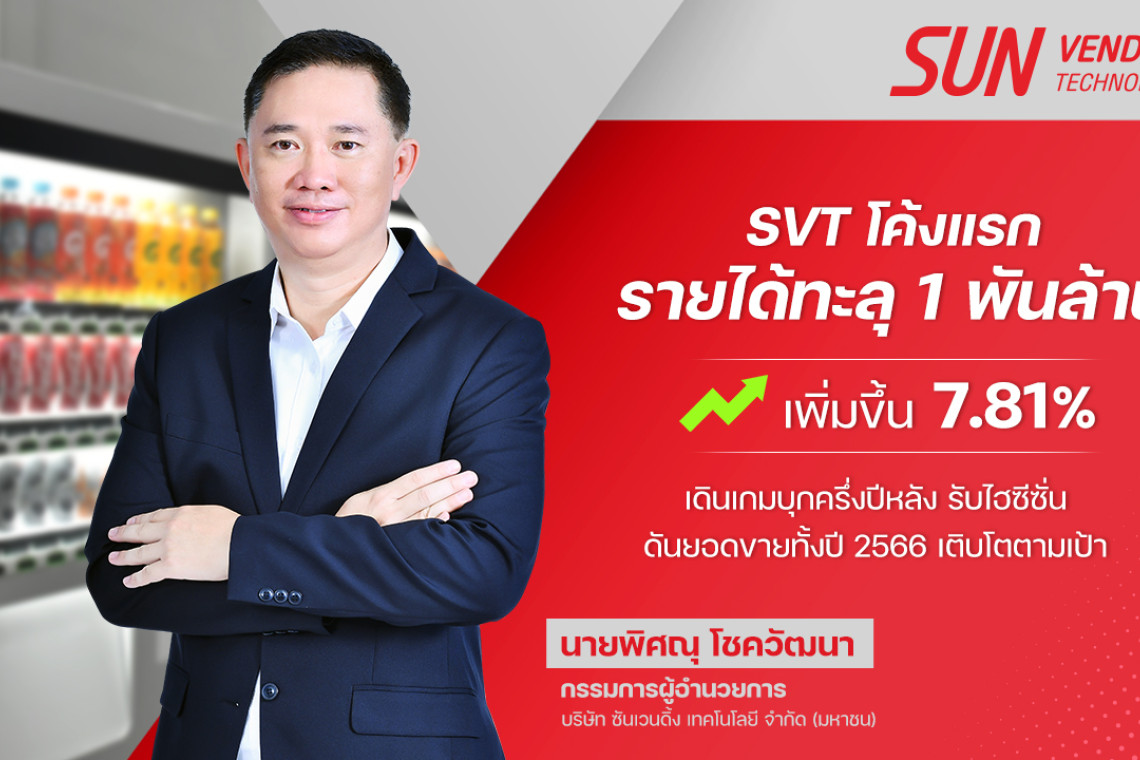 นายพิศณุ โชควัฒนา กรรมการผู้อำนวยการ บริษัท ซันเวนดิ้ง เทคโนโลยี จำกัด (มหาชน) หรือ SVT ผู้ประกอบธุรกิจค้าปลีกขายสินค้าผ่านเครื่องจำหน่ายสินค้าอัตโนมัติและขายเครื่องจำหน่ายสินค้าอัตโนมัติ (Vending Machine) เปิดเผยว่า ภาพรวมผลการดำเนินงานไตรมาส 2/2566 บริษัทฯ มีรายได้รวม 585.04 ล้านบาท เพิ่มขึ้น 6.90% จากช่วงเดียวกันของปีก่อน และกำไรสุทธิ 14.78 ล้านบาท