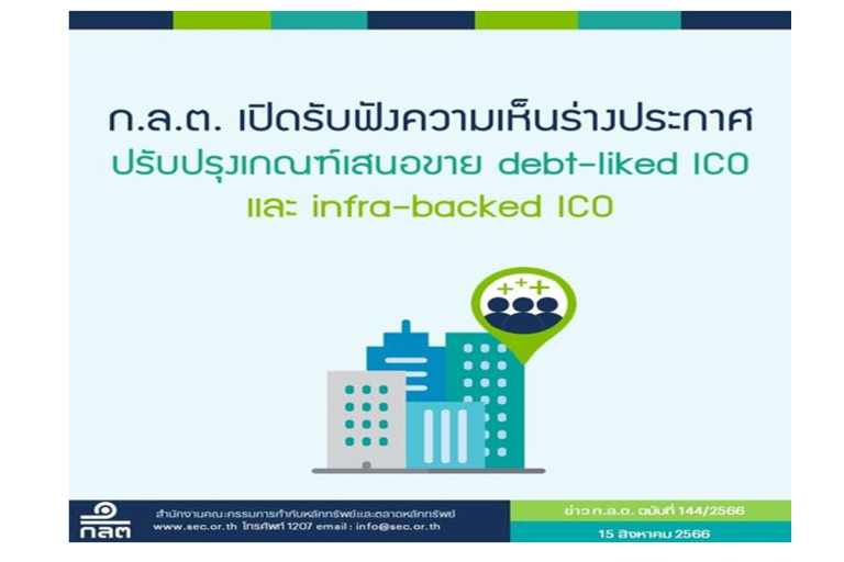 ตามที่สำนักงาน ก.ล.ต. มีแนวคิดที่จะปรับปรุงกฎเกณฑ์การเสนอขายโทเคนดิจิทัลที่มีการจัดโครงสร้างและให้ผลตอบแทนซึ่งมีลักษณะคล้ายหนี้ (debt-liked ICO) และโทเคนดิจิทัลที่มีกิจการโครงสร้างพื้นฐานหรือกระแสรายรับจากกิจการโครงสร้างพื้นฐานเป็นทรัพย์สินอ้างอิง (infra-backed ICO) เพื่อให้มีกลไกการป้องกันความเสี่ยงและการคุ้มครองผู้ลงทุนที่เพียงพอเหมาะสม รวมถึงป้องกันมิให้เกิดช่องว่างและปัญหาความเหลื่อมล้ำในกฎเกณฑ์และการกำกับดูแล (regulatory arbitrage) กับการออกเสนอขายหลักทรัพย์ที่มีลักษณะคล้ายกัน และส่งเสริมการนำเทคโนโลยีมาใช้ในการระดมทุน โดยคณะกรรมการ ก.ล.ต. ในการประชุมครั้งที่ 1/2566 เมื่อวันที่ 5 มกราคม 2566 ได้มีมติเห็นชอบหลักการและสำนักงาน ก.ล.ต.ได้เปิดรับฟังความคิดเห็นเมื่อวันที่ 21 กุมภาพันธ์ - 21 มีนาคม 2566 ซึ่งผู้แสดงความเห็นส่วนใหญ่เห็นด้วยกับหลักการในการปรับปรุงกฎเกณฑ์ดังกล่าว