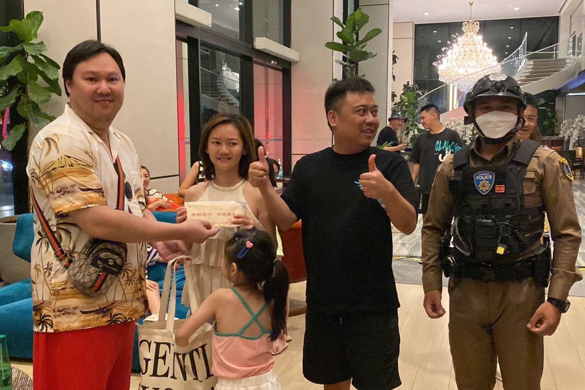 ด้านนาย กาศ ประกาศสิริ เจริญพระสิริ อดีตผู้สมัครบอกด้วยว่าตนเองได้เปิดกระเป๋าดูและตรวจทรัพย์สินของนักท่องเที่ยวโดยพบว่ามีเงินจำนวน 10,000 บาท และคีย์การ์ดของโรงแรมจึงได้ประสารหาโรงแรมให้แจ้งนักท่องเที่ยวว่าได้กระเป๋าตกไว้ก่อนพบว่านักท่องเที่ยวจีนยังคงท่องเที่ยวอยู่ไม่รู้ว่าตนนั้นทำกระเป๋าตกก่อนแจ้งให้นักท่องเที่ยวจีนทราบพร้อมทั้งให้เจ้าหน้าที่ตำรวจเข้าเป็นพยานในการส่งมอบของคืนให้กับนักท่องเที่ยวจีนดังกล่าว