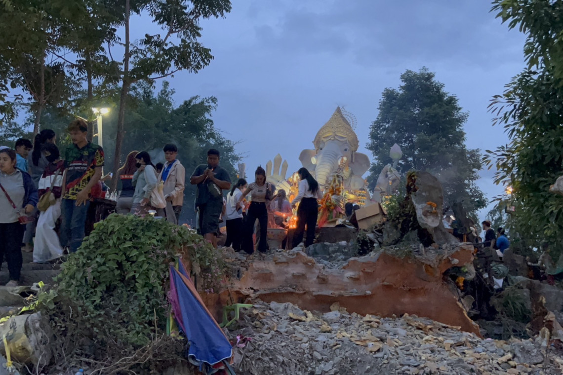 โดยบรรยากาศโดยทั่วไปพบว่ามีประชาชนหนาแน่นเบียดกันขึ้นไปสักการะองศ์พระพิฆเนศ เพื่อเป็นสิริมงคล รวมไปถึงขอโชคลาภ จนบริเวณรอบองศ์แทบจะไม่มีที่ยืน บริเวณด้านหน้าองศ์พระพิฆเนศ ยังมีเครื่องเซ่นไหว้วางเรียงรายจำนวนมาก แสดงถึงแรงศรัทธาของเหล่าสายมูที่เดินทางเข้ามาขอพร บางรายไม่สามรถขึ้นไปได้ก็จะจุดธูปปักไว้รอบฐาน แล้วยืนเฝ้าธูปใบหวยของตนเอง เพื่อจะนำตัวเลขที่ได้ ไปซื้อเสี่ยงโชคในวันพรุ่งนี้ ที่จะเป็นวันออกสลากกินแบ่งรัฐบาลด้วย