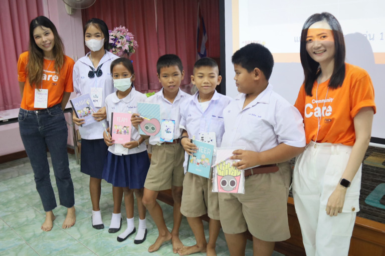 เสียงใสๆ ดังมาจากห้องประชุมใหญ่ใน โรงเรียนวัดเจริญบุญ จ.ปทุมธานี เรียกร้องความสนใจให้เดินแว่บเข้าไปดูสักหน่อย เราเห็นกลุ่มอาสาสมัคร FWD ประกันชีวิต และครูพี่เลี้ยงเกือบ 20 คน ยืนกระจายกันอยู่รอบห้อง โดยมีน้องๆ นักเรียนชั้นประถมศึกษาปีที่ 4 – 6 รวมกันกว่า 60 คน นั่งอยู่ตรงกลางกำลังคุยกันประสาเด็กๆ ขี้สงสัย