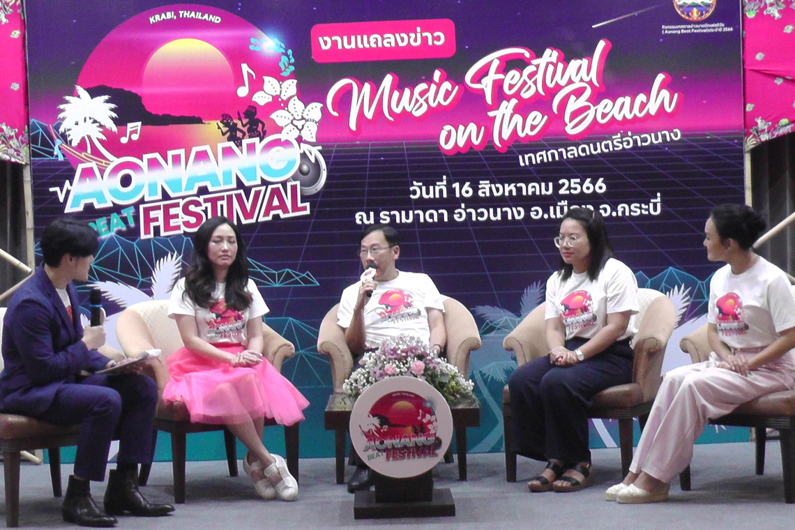 ที่ห้องประชุมโรงแรมรามาดาอ่าวนาง หมู่ที่ 2 บ้านอ่าวนาง ตำบลอ่าวนาง อำเภอเมืองกระบี่ จังหวัดกระบี่ นายสมชาย หาญภักดีปฏิมา รองผู้ว่าราชการจังหวัดกระบี่ พร้อมด้วยนางระวิวรรณ แสงจันทร์ รองผู้อำนวยการการท่องเที่ยวแห่งประเทศไทย สำนักงานจังหวัดกระบี่ นางสาวศศิธร กิตติธรกุล นายกสมาคมธุรกิจการท่องเที่ยวจังหวัดกระบี่และนางสาววิชุพรรณ ภูเก้าล้วนศรีสัญญา นายกสมาคมโรงแรมจังหวัดกระบี่ ได้ร่วมกันแถลงข่าว การจัดงาน อ่าวนางบีทเฟสติวัลจุดประสงค์ เพื่อเป็นการประชาสัมพันธ์และสร้างภาพลักษณ์ที่ดีทางการท่องเที่ยวของจังหวัดกระบี่ ประจำปี 2566 ที่จะจัดขึ้นในระหว่าง วันที่ 25 – 26 สิงหาคม 2566 ที่บริเวณอ่าวนางแลนด์มาร์ค หน้าหาดนพรัตน์ธารา หรือหาดคลองแห้ง หมู่ที่ 3 บ้านคลองแห้ง ตำบลอ่าวนาง อำเภอเมืองกระบี่ จังหวัดกระบี่