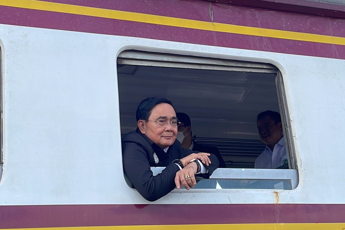 จากนั้นขบวนรถไฟได้เคลื่อนตัวออก ผู้สื่อข่าวถามต่ออีกว่าขบวนรถไฟนี้ยังมีเสี่ยหนูนั่งอยู่ด้วย ขณะที่นายอนุทิน นั่งอยู่ด้านหลังนายกฯถึงกับหัวเราะเสียงดังชอบใจ เมื่อผู้สื่อข่าวถามว่า จะต่อขบวนกันไปแบบนี้ไปตลอดหรือเปล่า พล.อ.ประยุทธ์ ไม่ตอบคำถาม