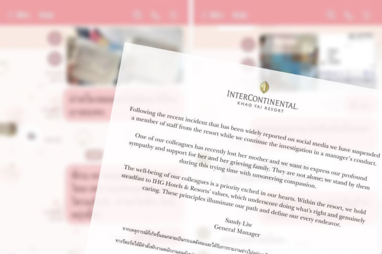 เมื่อวันที่ 18 ส.ค.66 โรงแรมอินเตอร์คอนติเนนทัล เขาใหญ่ รีสอร์ต ออกแถลงการณ์ ระบุว่า จากเหตุการณ์ที่เกิดขึ้นจนกลายเป็นกระแสสังคมและได้รับการรายงานข่าวไปอย่างกว้างขวางบนสื่อสังคมออนไลน์ตลอดวันที่ผ่านมา ทางรีสอร์ตมีคำสั่งพักงานพนักงานคนดังกล่าวออกจากรีสอร์ต ในขณะเดียวกันดำเนินการสอบสวนพฤติกรรมของผู้จัดการคนนี้ต่อไป