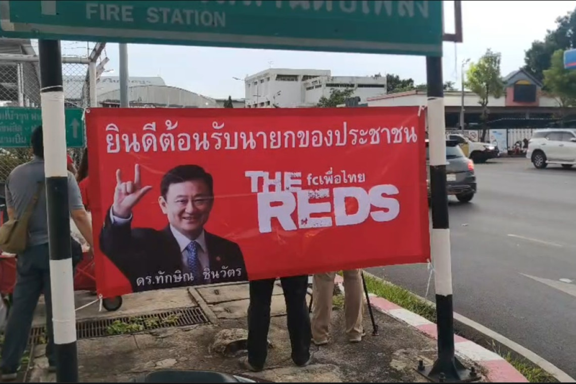 ล่าสุด วันที่ 21 ส.ค.66 ผู้สื่อข่าวรายงานว่า บริเวณหน้าทางเข้าอาคารผู้โดยสารอากาศยานส่วนบุคคล ถนนเทวฤทธิ์พันลึก กลุ่มฅนรักทักษิณ เสื้อแดงกรุงเทพ นำแผ่นป้ายไวนิลสีแดงมาติดอยู่ที่เสาไฟฟ้า และเสาตอม้อรถไฟฟ้าสายสีแดง รวมถึงแนวรั้วสนามบิน ซึ่งมีข้อความบนแผ่นป้าย “ฅนรักทักษิณ ยินดีต้อนรับ ดร.ทักษิณ ชินวัตร นายกรัฐมนตรีคนที่ 23 ของประเทศไทย PHEU THAI No.29” และ นายกฯ ทักษิณ นายกฯ ที่นั่งอยู่ในหัวใจประชาชนตลอดกาล และสุขสันต์วันเกิดนายก็ทักษิณ อายุครบ 74 ปี 26 ก.ค.66 Tony FC ” พร้อมมีการนำน้ำดื่มมาตั้งรออยู่ริมถนนด้วย