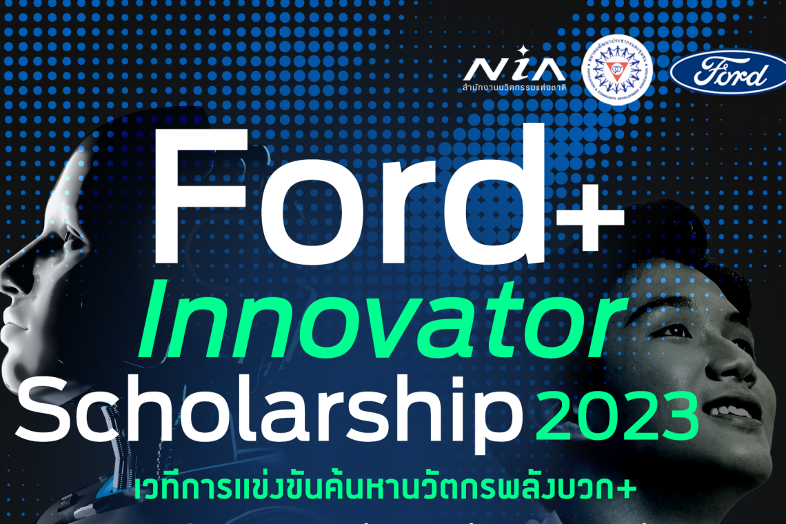 ฟอร์ด ประเทศไทย ร่วมกับสมาคมพัฒนาประชากรและชุมชน (Population and Community Development Association - PDA) สำนักงานนวัตกรรมแห่งชาติ (National Innovation Agency - NIA) และบริษัท ทีวีบูรพา จำกัด จัดโครงการ Ford+ Innovator Scholarship 2023 ปีที่ 9 เปิดพื้นที่ให้เยาวชนร่วมประชันไอเดียนวัตกรรมและการออกแบบสิ่งประดิษฐ์ ในหัวข้อ นวัตกรรมทางสังคมพลังบวกเพื่อยกระดับโลกให้น่าอยู่ (Social innovation+ for a better world challenge) ชิงทุนการศึกษาจำนวน 12 ทุน รวม 840,000 บาท นักเรียน นักศึกษาในระดับมัธยมศึกษา อาชีวศึกษา และอุดมศึกษาที่สนใจ สามารถสมัครเข้าร่วมโครงการและส่งผลงานได้ตั้งแต่วันนี้– 30 กันยายน 2566 ผู้สนใจสอบถามข้อมูลได้ที่ โทร. 089-818-3072 หรืออีเมล Fordinnovator2023@gmail.com
