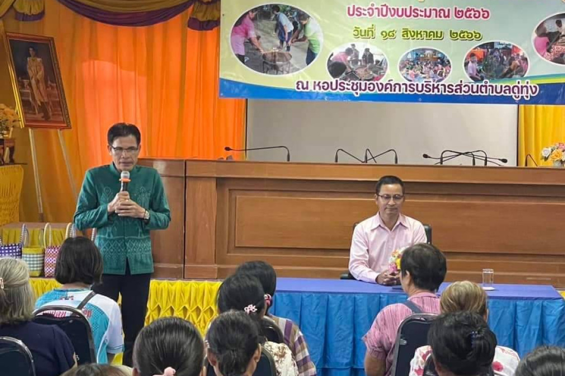 วันที่ 22 ส.ค.66 ผู้สื่อข่าวรายงานว่า ที่ผ่านมาที่ห้องประชุมสภาองค์การบริหารส่วนตำบลดู่ทุ่ง อำเภอเมืองยโสธร จังหวัดยโสธร นายเกียรติศักดิ์ โตพุ่ม นายกองค์การบริหารส่วนตำบลดู่ทุ่ง เป็นประธานเปิดโครงการฝึกอบรมกลุ่มอาชีพ สตรี ผู้สูงอายุในการจักสานตระกล้าพลาสติกเพื่อนำไปประกอบอาชีพในการสร้างรายได้ให้กับตนเองและสร้างรายได้ให้กับครอบครัวเพื่อพัฒนาคุณภาพชีวิตให้ดีขึ้นอยู่ดีกินดีอีกทั้งเป็นการใช้เวลาว่างให้เกิดประโยชน์ในผู้สูงอายุและกลุ่มสตรี นอกจากนั้นแล้วยังเป็นการสร้างความสามัคคีในกลุ่มสตรีและผู้สูงอายุที่ได้ทำกิจกรรมร่วมกันโดยมีกลุ่มเป้าหมายกลุ่มสตรีและผู้สูงอายุในพื้นที่ตำบลดู่ทุ่งทั้ง 11 หมู่บ้านเข้าร่วมโครงการดังกล่าวโดยมี รองนายก อบต.ดู่ทุ่ง ปลัด อบต.ส.อบต.ผู้นำท้องที่ตลอดจนเจ้าหน้าที่อบต.ดู่ทุ่งร่วมกิจกรรมในครั้งนี้
