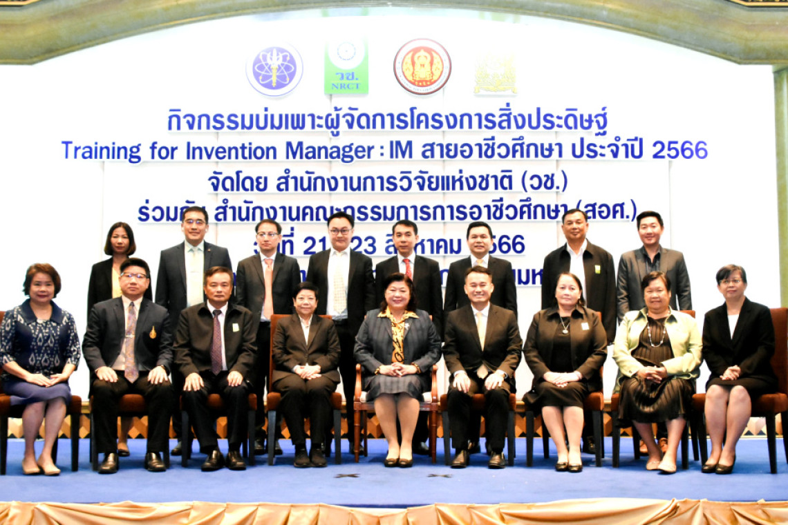สำนักงานการวิจัยแห่งชาติ (วช.) กระทรวงการอุดมศึกษา วิทยาศาสตร์ วิจัยและนวัตกรรม ร่วมกับ สำนักงานคณะกรรมการการอาชีวศึกษา จัดกิจกรรม “บ่มเพาะผู้จัดการโครงการสิ่งประดิษฐ์” Training for Invention Manager : IM สายอาชีวศึกษา ประจำปี 2566 เพื่อส่งเสริมและสนับสนุนการพัฒนาศักยภาพของนักเรียน นักศึกษาสายอาชีวศึกษา ให้เกิดแรงจูงใจในการคิดค้นผลงานประดิษฐ์และนวัตกรรมเพื่อใช้ในประเทศ โดย ดร.วิภารัตน์ ดีอ่อง ผู้อำนวยการสำนักงานการวิจัยแห่งชาติ เป็นประธานเปิดงานพร้อมปาฐกถาพิเศษ เรื่อง “การขับเคลื่อนเศรษฐกิจด้วยพลังสิ่งประดิษฐ์และนวัตกรรมสายอาชีวศึกษา” และมี นายสง่า แต่เชื้อสาย ผู้ช่วยเลขาธิการคณะกรรมการการอาชีวศึกษา เข้าร่วมในพิธีเปิด ณ โรงแรมมารวย การ์เด้น กรุงเทพฯ