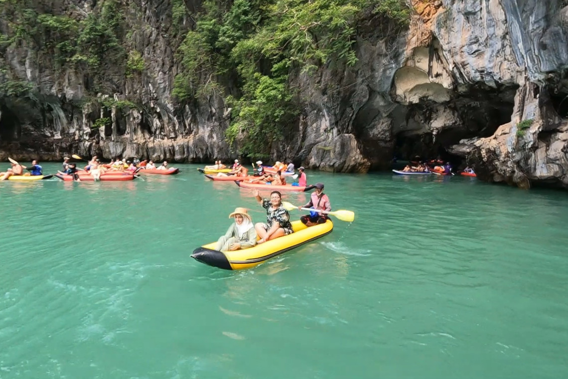 ทั้งนี้พบว่าบรรยากาศเป็นไปด้วยความคึกคักมีกลุ่มนักท่องเที่ยวชาวตะวันออกกลาง เดินทางเข้ามาท่องเที่ยวกิจกรรมพายเรือแคนู ชมธรรมชาติภายในเกาะห้องที่ด้านในมีลักษณะเป็นลากูนขนาดใหญ่มีหน้าผารอบด้าน และมีถ้ำเล็กถ้ำน้อย ให้พายเรือเข้าไปเที่ยวชม โดยมีเจ้าหน้าของบริษัททัวร์เป็นคนพายเรือนำเที่ยว และมีเจ้าหน้าที่ของอุทยานแห่งชาติอ่าวพังงาค่อยดูแลความปลอดภัยและอำนวยความสะดวก พร้อมกำชับไม่ให้มีการทำลายสิ่งแวดล้อม ซึ่งนักท่องเที่ยวต่างรู้สึกประทับใจสนุกสนานกันเป็นอย่างมากพร้อมกับบอกว่าเมืองไทยสวยมาก