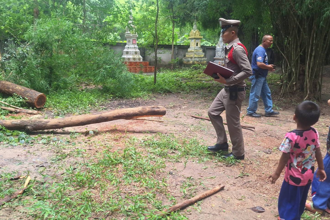ขณะที่พระรูปหนึ่ง ที่มีกุฏิห่างจากจุดที่เกิดเหตุไม่ถึง 10 เมตร บอกกับตร.ว่า เมื่อคืนนี้ก็มีคนร้ายเข้ามาพูดกันเสียงดังมาก อาตมาก็เปิดหน้าต่างส่องดูไม่กล้าออกมา สักพักก็มีคนร้ายสองคนเดินมาหน้ากุฏิ ถอดหลอดไฟออกแล้วได้ยินเสียงพูดกันว่า ได้ยินเสียงพระโทรศัพท์ไหม อาตมาก็กลัวเลยไม่กล้าออกมาและไม่กล้าโทรบอกชาวบ้าน เห็นเขาตัดต้นพะยูงล้มแล้วก็ขนขึ้นรถทันที เขาตัดไม้อยู่ประมาณ 1 ชม. ไม่ยืนยันว่ามีปืนไหมเพราะมันมืดมาก แต่คิดว่าน่าจะมี ยอมรับเป็นพระก็กลัวเพราะเขามาหลายคนและอาตมาก็เพิ่งบวชใหม่ในวัดนี้ด้วย