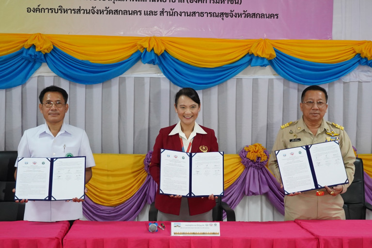 3 หน่วยงาน กำกับคุณภาพสถานพยาบาลปฐมภูมิ ร่วมลงนามบันทึกข้อตกลงความร่วมมือ (MOU) ในการพัฒนาคุณภาพมาตรฐานสถานพยาบาลปฐมภูมิ เพื่อยกระดับด้านการสาธารณสุขมูลฐานและบริการสุขภาพระดับปฐมภูมิ นำร่องในโรงพยาบาลส่งเสริมสุขภาพตำบล จังหวัดสกลนคร 6 แห่ง