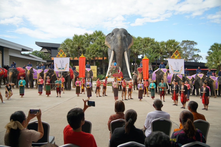 พร้อมกันนี้ สวนนงนุชพัทยา ยังได้จัดขบวนนางรำและโขลงช้างกว่า 50 เชือก เข้าร่วมในพิธีรับขวัญช้างน้อย ซึ่งพิธีรับขวัญช้างที่กำเนิดใหม่ของปางช้างสวนนงนุชพัทยา ถือเป็นประเพณีที่ดีงามที่ต้องจัดขึ้นเมื่อมีช้างคลอดใหม่ทุกเชือก ช้างถือได้ว่าเป็นสัตว์คู่บ้านคู่เมืองของไทย