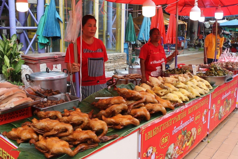 "บรรยากาศการจับจ่ายวันนี้ยังไม่คึกคักอาจจะเป็นเพราะเป็นวันธรรมดาคงต้องรอหลังเลิกงานช่วงเย็นๆ ซึ่งวันจ่ายในนี้ ตั้งแต่เช้าที่ผ่านมาขายได้เรื่อยๆ ขณะที่การเตรียมของมาขายนั้นลดลงครึ่งต่อครึ่ง ช่วงเทศกาลตรุษจีนที่ผ่านมาสั่ง เป็ด และไก่มาอย่างละ 150 ตัว สาทรจีนปีนี้เหลืออยู่ 70 ตัว เพราะว่าสาทรจีนบางคนก็ไม่ไหว้ บางคนก็ไหว้แค่ผลไม้กับของหวาน"