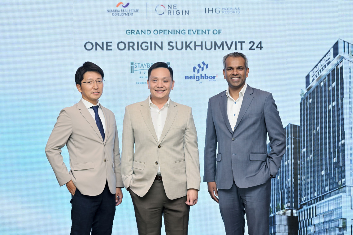 ปิติ จารุกำจร ประธานเจ้าหน้าที่ฝ่ายบริหาร บริษัท วัน ออริจิ้น จำกัด (มหาชน) หรือ ONEO นาโอมิ เอนโดะ กรรมการผู้จัดการ บริษัท โนมุระ เรียลเอสเตท (ประเทศไทย) จำกัด ราจิต สุขุมารัน กรรมการบริหาร ประจำภูมิภาคเอเชียตะวันออกเฉียงใต้และเกาหลี (SEAK) เครือโรงแรมอินเตอร์คอนติเนตัล (IHG) ร่วมเป็นประธานงานแกรนด์โอเพนนิ่ง โครงการวัน ออริจิ้น สุขุมวิท 24(Grand Opening of One Origin Sukhumvit 24) ประกอบด้วย โรงแรมสเตย์บริดจ์ สวีท แบงค็อก สุขุมวิท และคอมมูนิตี้มอลล์ “เนเบอร์ 24” อย่างเป็นทางการ ท่ามกลางลูกค้าและแขกผู้มีเกียรติที่มาร่วมงานอย่างคับคั่ง ณ โรงแรมสเตย์บริดจ์ สวีท แบงค็อก สุขุมวิท ซึ่งเป็นส่วนหนึ่งในโครงการวัน ออริจิ้น สุขุมวิท 24 เนื่องในโอกาสที่โครงการวัน ออริจิ้น สุขุมวิท 24 เปิดให้บริการอย่างเป็นทางการแล้ว