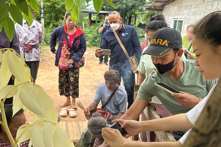 เมื่อเวลา 13.00 น.วันที่ 30 ส.ค.2566 ผู้สื่อข่าวลงพื้นที่เดินทางไปยังบ้านเลขที่ 203 ม.4 บ้านโนนคูน ต.ท่าศาลา อ.มัญจาคีรี จ.ขอนแก่น ซึ่งเป็นบ้านของนางเลี่ยง นวลนอก อายุ 67 ปี หลังพบว่ามีต้นคูณหรือต้นราชพฤกษ์เป็นสีทองขึ้นอยู่หน้าบ้าน ซึ่งเมื่อไปถึงพบชาวบ้านและเซียนหวยจำนวนมาก ต่างถือธูป เทียน มาทำกราบไหว้ต้นคูน บางคนนำแป้งมาโรยที่ต้นคูนที่อยู่ติดกัน เพื่อหาตัวเลขบนต้นคูน ปรากฎว่า คนที่ใช้แป้งลูบต้นคูนพูดตัวเลข 49-59 ออกมา ชาวบ้านที่ได้ยินต่างพากันจดจำตัวเลขไว้ นอกจากนี้ ชาวบ้านที่จุดธูปเทียนไหว้ต้นคูณสีทอง ยังเห็นเลขที่ปรากฏบนใบคูนเป็นเลข 1 และเลข 2 พากันถ่ายรูปเอาตัวเลขไปเสี่ยงโชค