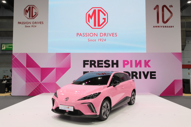 ไฮไลท์จากการออกแบบรถไฟฟ้าโดย AI ในช่วงที่ “สีชมพู ฟีเวอร์” นำมาสร้างเป็นคอนเทนต์ NEW MG4 ELECTRIC สีชมพูบนโลกโซเชียล ซึ่งได้รับความสนใจจากแฟนเพจเป็นอย่างมาก จากเรื่องราวในออนไลน์ กลายเป็นไอเดียนำไปสู่รถคันจริงด้วยคอนเซ็ปต์ “FROM AI TO REALITY” โดยการนำเอา NEW MG4 ELECTRIC มาแรปด้วยสติ๊กเกอร์สี FRESH PINK ทั้งคัน พร้อมเปิดรับจองให้เป็นเจ้าของเพียง 8 คัน ในงาน BIG MOTOR SALE 2023 เท่านั้น เพื่อเป็นของขวัญให้กับแฟนๆ เอ็มจี