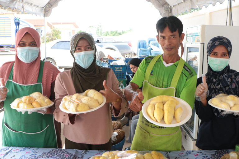 นอกจากนี้ วันนี้ ที่จัดโครงการมหกรรมบุฟเฟ่ต์ผลไม้ที่จังหวัดนราธิวาสเป็นส่วนหนึ่งของงาน วิจัย ที่ริเริ่มการพัฒนาของการค้าขายให้ผู้ประกอบการในจังหวัด ผักและผลไม้ เราเริ่มที่ผลไม้ก่อน เราจะเปิดช่องทางการขายให้กับเขา ว่าเขามีผลไม้ไม่ว่าจะเป็น เงาะ มังคุด ทุเรียน มาที่บูท บุฟเฟ่ต์นี้ได้เลย เรารับซื้อไม่อั้น จัด 3 วัน เรารับซื้อผลไม้ของคนในพื้นที่ทั้งหมด ..เพื่อมาจำหน่ายให้กับคนที่มากินบุฟเฟ่ต์ ราคา หัวละ 350 บาท ที่ราคาทุกทุกคนสัมผัสและก็ เข้าถึงได้และก็อยากเชิญชวนให้คนที่ผ่านไปผ่านมา ทราบข่าวนี้ก็มาทานบุฟเฟ่ต์ด้วยกัน เราการันตีว่า ทุเรียนแท้ ทุเรียนบางนราสายพันธุ์แร่ทองคำ อร่อย เติมได้ไม่อั้นภายใน 1 ชั่วโมงคะ