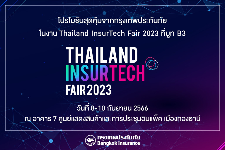 กรุงเทพประกันภัยขอเชิญชวนผู้ที่กำลังมองหาหลักประกันที่อุ่นใจให้กับชีวิตในงานมหกรรมด้านประกันภัยครั้งยิ่งใหญ่ งาน Thailand InsurTech Fair 2023 ภายใต้แนวคิด “STRENGTHENING SUSTAINABILITY THROUGH INSURANCE INNOVATION เสริมสร้างโลกแห่งประกันภัยที่ยั่งยืนด้วยสุดยอดนวัตกรรมด้านประกันภัย” จัดโดยสำนักงานคณะกรรมการกำกับและส่งเสริมการประกอบธุรกิจประกันภัย (คปภ.) วันที่ 8-10 กันยายน 2566 ณ อาคาร 7 ศูนย์แสดงสินค้าและการประชุมอิมแพ็ค เมืองทองธานี