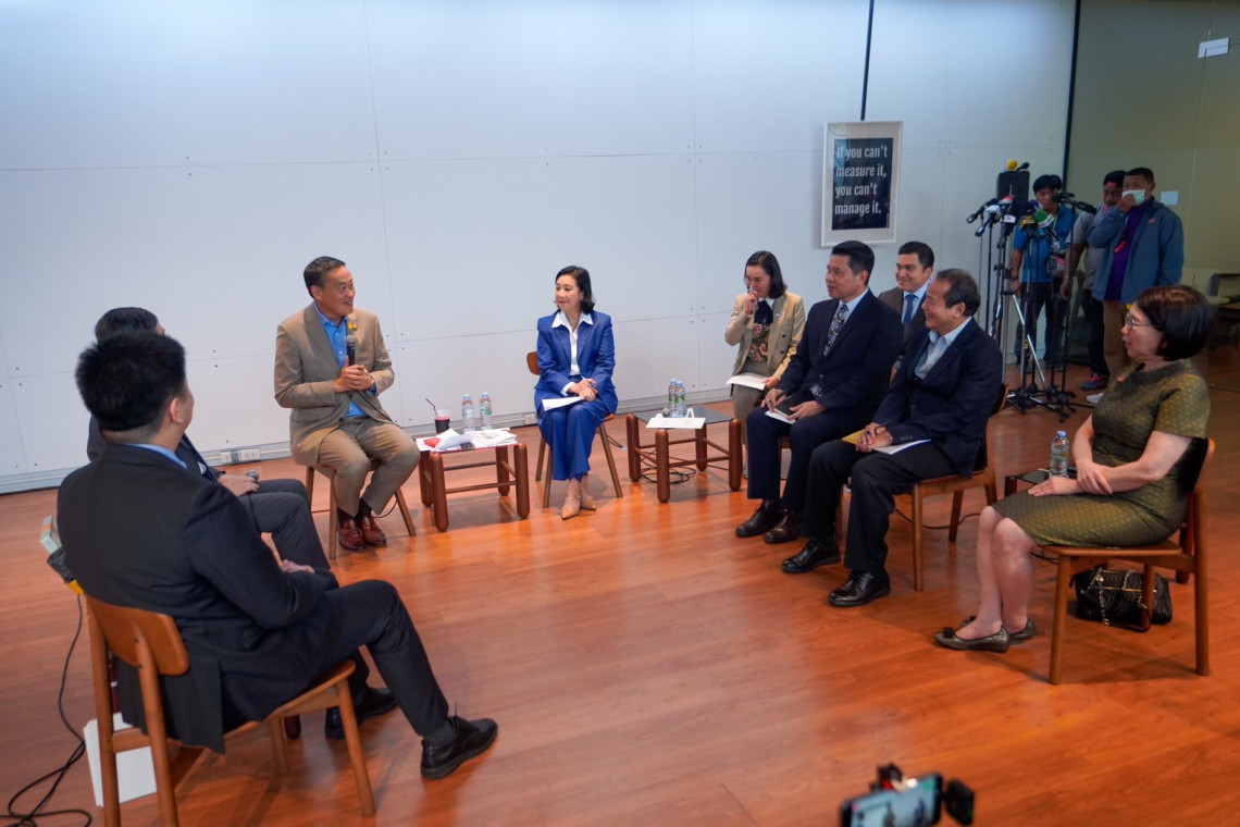 เมื่อเวลา 16.00 น. วันที่ 6 ก.ย.66 นายเศรษฐา ทวีสิน นายกรัฐมนตรีและรัฐมนตรีว่าการกระทรวงการคลัง พร้อมด้วย นางสาวลิณธิภรณ์ วริณวัชรโรจน์ สส.แบบบัญชีรายชื่อ รองเลขาธิการและรักษาการโฆษกพรรคเพื่อไทย พรรคเพื่อไทย ดร.ณหทัย ทิวไผ่งาม คณะทำงานนโยบายด้านการศึกษาพรรคเพื่อไทย หารือ แลกเปลี่ยน ความคิดเห็นและข้อเสนอแนะจากกองทุนเพื่อความเสมอภาคทางการศึกษา (กสศ.) นำโดย ดร.ประสาร ไตรรัตน์วรกุล ประธานบอร์ด กสศ.และ .ดร.ไกรยส ภัทราวาท ผจก กสศ.และกรรมการบอร์ด กสศ. พร้อมมอบกระเช้าสินค้าท้องถิ่นใน จ.ราชบุรี ร่วมแสดงความยินกีในฐานะที่เข้ารับตำแหน่งนายกรัฐมนตรี