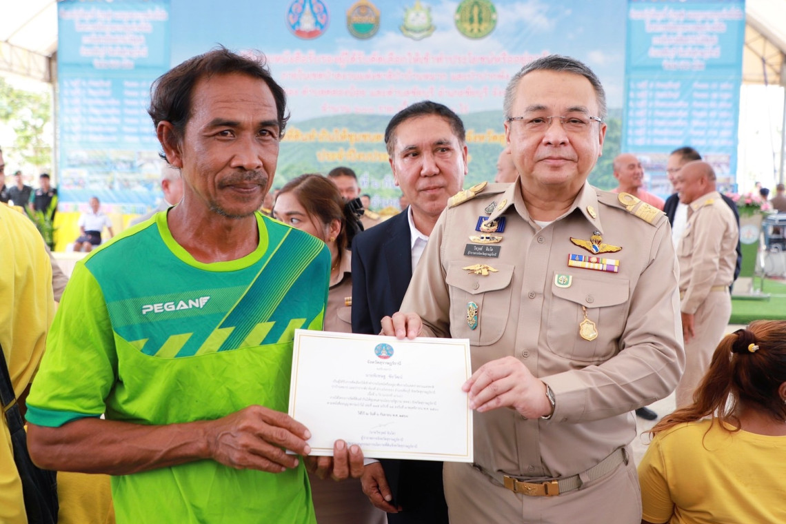 จังหวัดสุราษฎร์ธานีมอบหนังสือรับรองการเป็นผู้ได้รับการคัดเลือกให้เข้าทำประโยชน์หรืออยู่อาศัยในเขตป่าสงวนแห่งชาติ ป่าบ้านหมากและป่าปากพัง อำเภอชัยบุรี จังหวัดสุราษฎร์ธานี