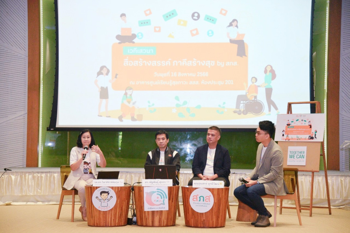 วันที่ 7 ก.ย.2566 สำนักงานกองทุนสนับสนุนการสร้างเสริมสุขภาพ (สสส.) โดยสำนักพัฒนาภาคีสัมพันธ์และวิเทศสัมพันธ์ (สภส.) จัดกิจกรรม เสวนา “สื่อสร้างสรรค์ภาคีสร้างสุข” by สภส. ภายใต้โครงการความร่วมมือการสื่อสารเพื่อสนับสนุนภาคีสุขภาวะ เพื่อสร้างความร่วมมือกับ 5 สถาบันอุดมศึกษาในการพัฒนานักสื่อสารเพื่อสนับสนุนการสื่อสารการขับเคลื่อนงานภาคีเครือข่ายสุขภาวะ
