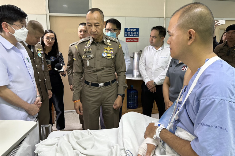 ความคืบหน้า พล.ต.อ.ต่อศักดิ์ สุขวิมล รองผบ.ตร. เดินทางไปยังโรงพยาบาลนครปฐม เพื่อติดตามความคืบหน้า และเยี่ยม ผู้ได้รับบาดเจ็บจากเหตุการณ์ดังกล่าว ทั้งนี้ได้เข้าเยี่ยมพ.ต.ท.วศิน พันปี รอง ผกก.2 บก.ทล ที่บาดเจ็บและพักรักษาตัว พร้อมกับสวมกอดให้คำมั่นกับทางครอบครัวพ.ต.ต.ศิวกร สายบัว สว.ส.ทล.1 กก.2 บก.ทล. ว่าจะดำเนินการนำคนผิดมาลงโทษให้ได้
