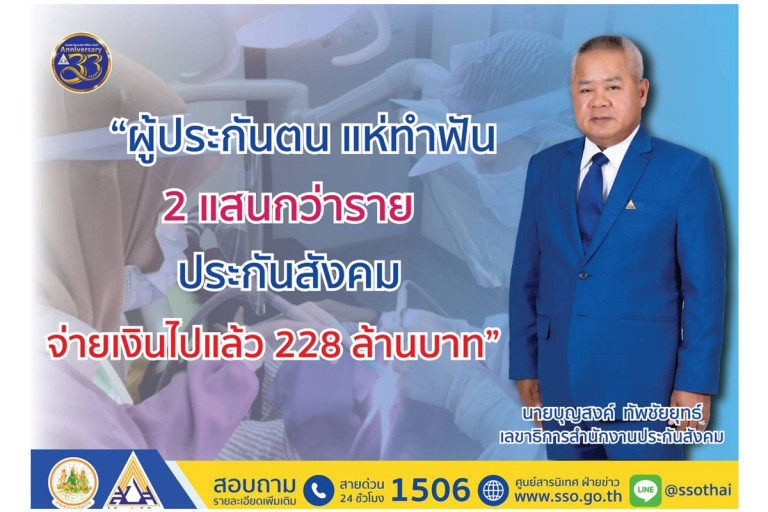 ผู้ประกันตน แห่ทำฟัน 2 แสนกว่าราย ประกันสังคมจ่ายเงินไปแล้วกว่า 228 ล้านบาท
