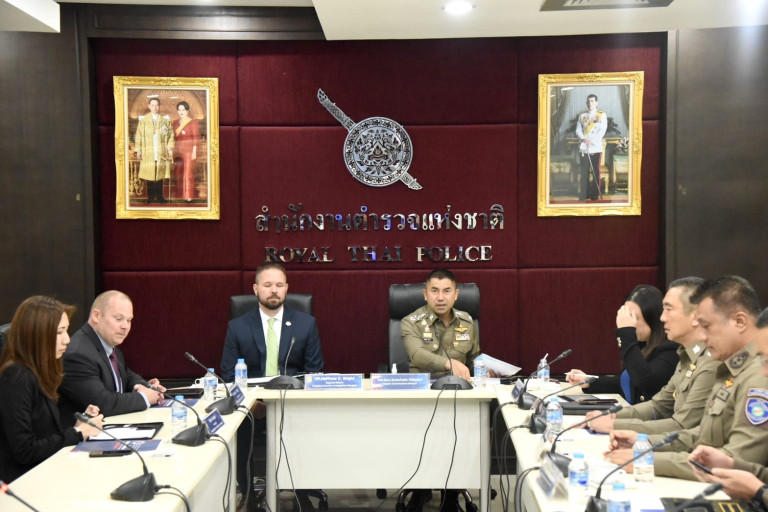 วันที่ 7 กันยายน 2566 ที่ห้องประชุม 3 อาคาร 1 สำนักงานตำรวจแห่งชาติ พล.ต.อ.สุรเชษฐ์ หักพาล รองผู้บัญชาการตำรวจแห่งชาติ/ผู้อำนวยการศูนย์พิทักษ์ เด็ก สตรี ครอบครัว พร้อมด้วย พล.ต.ท.พนัญชัย ชื่นใจธรรม ผู้ทรงคุณวุฒิพิเศษ สำนักงานตำรวจแห่งชาติ พล.ต.ต.ฐิตวัฒน์ สุริยฉาย ผู้บังคับการตำรวจสีบสวนสอบสวนอาชญากรรมทางเทคโนโลยี 4 รองหัวหน้าชุดปฏิบัติการต่อต้านการค้ามนุษย์ และคณะ ได้ให้การต้อนรับ MR.Matthew E. Wright Regional Attache Homeland Security Investigations Bangkok และ MR.Jacob T. Carlyle Assistant Attache Homeland Security Investigations Bangkok เจ้าหน้าที่ระดับสูงของ สำนักงานสืบสวนความมั่นคงแห่งมาตุภูมิ กระทรวงความมั่นคงแห่งมาตุภูมิสหรัฐอเมริกา