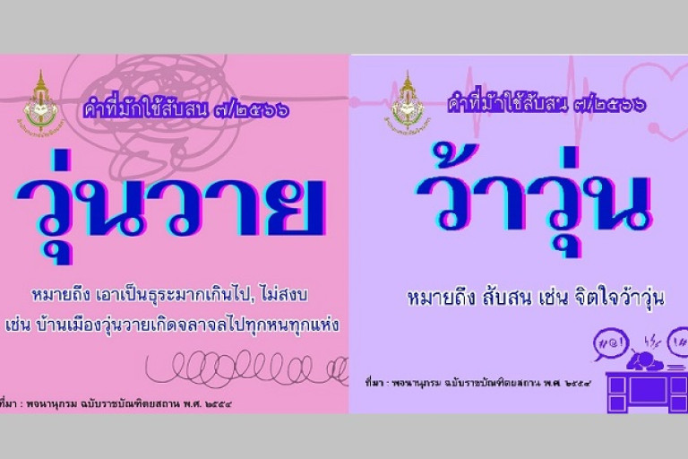 ล่าสุด เพจสำนักงานราชบัณฑิตยสภา ได้เผยแพร่ข้อมูลที่เป็นประโยชน์ โดยมีข้อความระบุ ว่า คำที่มักใช้สับสน "ว้าวุ่น" กับ "วุ่นวาย"