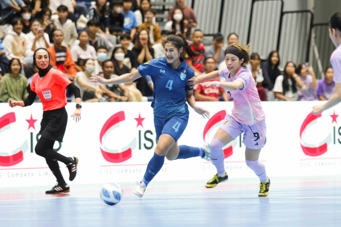 จนกระทั่งเสียงเฮดังลั่นเทอร์มินอล 21 ฮอลล์ น.7 ฟุตซอลหญิงไทยมาได้ประตูขึ้นนำจากจังหวะที่ จิระประภา นิ่มรัตนสิงห์ จ่ายบอลทะลุช่องมาให้ หทัยชนก เทพคุณ หลุดขึ้นมาทางฝั่งซ้าย ก่อนตัดสินใจยิงด้วยขวาบอลพุ่งผ่านตัว อิโนะอุเอะ เนเน่ ผู้รักษาประตูญี่ปุ่นเสียบเสาไกลเข้าไปให้ทีมชาติไทย ขึ้นนำ 1-0