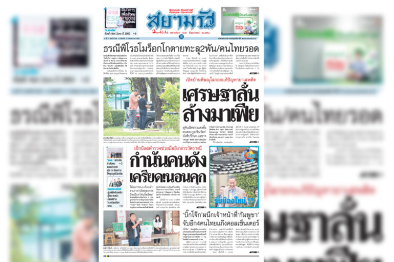 หน้า 1 หนังสือพิมพ์สยามรัฐรายวัน ฉบับวันจันทร์ที่ 11 กันยายน 2566