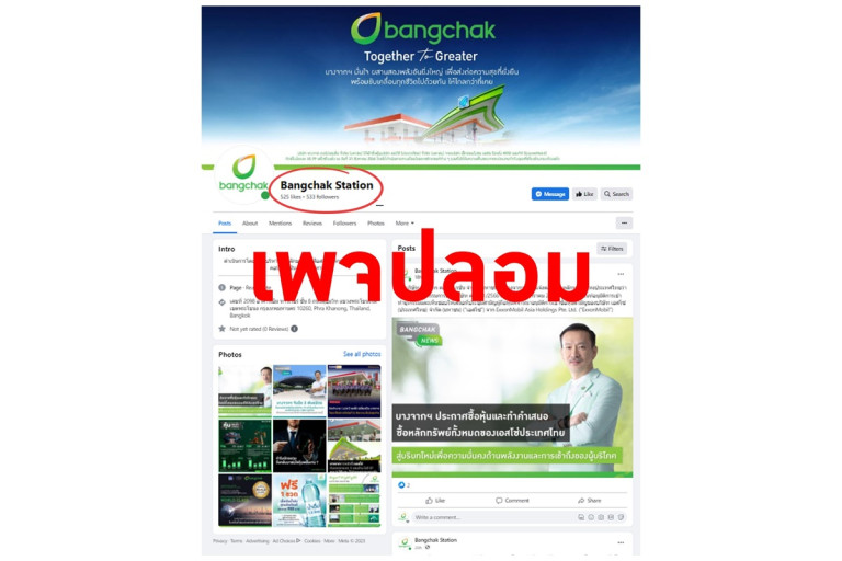 บริษัท บางจากฯ แจ้งเตือนเพจปลอม เพจ Bangchak Station ไม่ใช่เพจของบริษัท บางจากฯ โปรดอย่ากดติดตามหรือกดไลค์