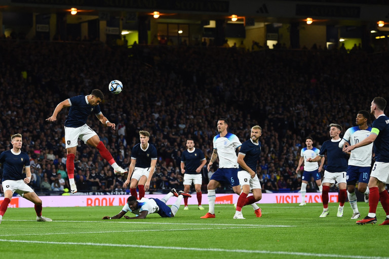 ที่สนาม แฮมป์เด้น พาร์ค ในการแข่งขันฟุตบอลกระชับมิตร คืนวันที่ 12 ก.ย.66 ระหว่างทีม "สกอตแลนด์" พบกับทีม "อังกฤษ" เริ่มเกมการแข่งขัน