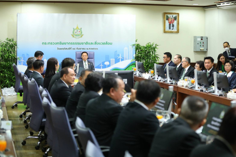 วันที่ 14 ก.ย.2566 เวลา 10.00 น. พล.ต.อ.พัชรวาท วงษ์สุวรรณ รองนายกรัฐมนตรี และรัฐมนตรีว่าการกระทรวงทรัพยากรธรรมชาติและสิ่งแวดล้อม เป็นประธานการประชุมผู้บริหารกระทรวงทรัพยากรธรรมชาติและสิ่งแวดล้อม โดยมี นายจตุพร บุรุษพัฒน์ ปลัดกระทรวงทรัพยากรธรรมชาติและสิ่งแวดล้อม พร้อมผู้บริหารระดับสูงกว่า 58 คน เข้าร่วมประชุม ที่กระทรวงทรัพยากรธรรมชาติและสิ่งแวดล้อม