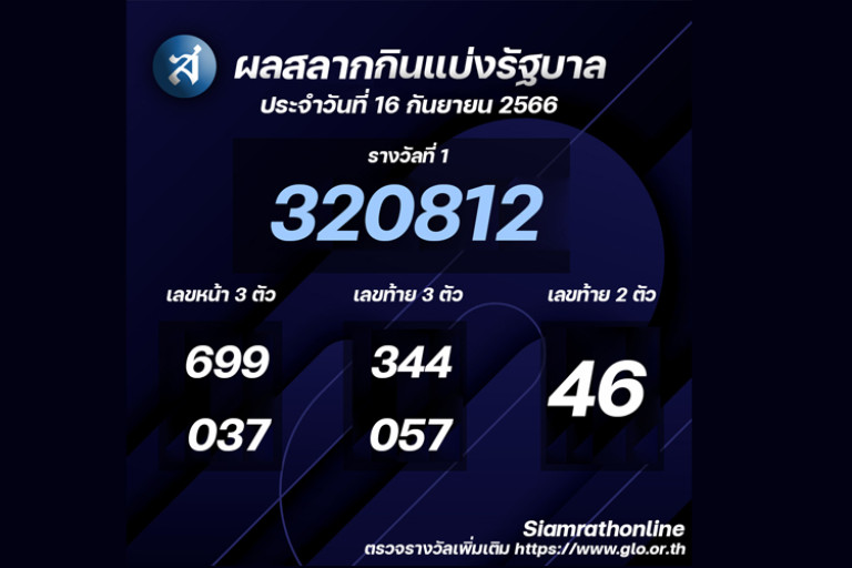 ผลสลากกินแบ่งรัฐบาลงวดประจำวันที่ 16 กันยายน 2566
