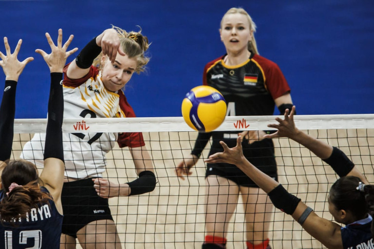 เซตที่ 3 นักตบสาวไทยประสานงานกันดีขึ้น แต่ก็ไม่สามารถหยุดความร้อนแรวของสาวเยอรมันได้ แพ้ไปอีก 25 - 20