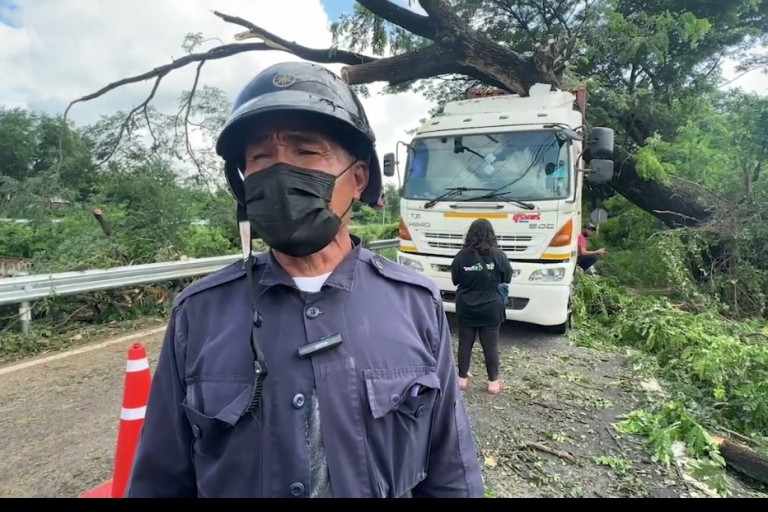 ขอนแก่นฝนตกต่อเนื่อง ต้นจามจุรีอายุกว่า 50 ปี โค่นล้มทับรถเทลเลอร์ เคราะห์ดีคนขับปลอดภัย เจ้าหน้าที่ที่เกี่ยวข้องเร่งเคลียร์พื้นที่ตัดต้นไม้เปิดการจราจร