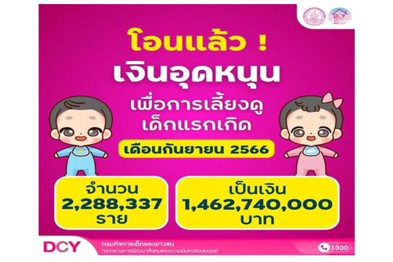 จากกรณีประกาศการเลื่อนจ่ายเงินตามโครงการเงินอุดหนุนเพื่อการเลี้ยงดูเด็กแรกเกิด เมื่อวันที่ 7 กันยายน 2566 ซึ่งเดิมต้องจ่ายภายในวันที่ 8 กันยายน 2566 ให้กับผู้มีสิทธิรายเดิมและรายใหม่ จำนวน 2,288,337 คน
