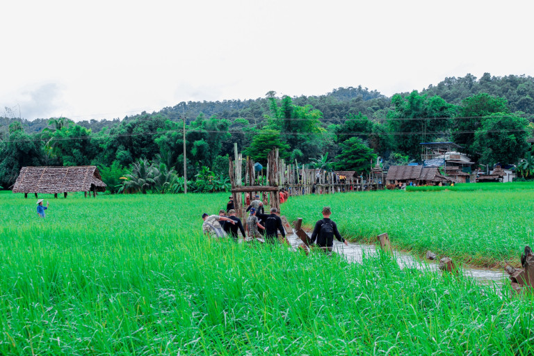 เจ้าอาวาสวัดภูสมณาราม บ้านกุงไม้สัก ต.ปางหมู อ.เมือง จ.แม่ฮ่องสอน พร้อมศรัทธาญาติโยมและหน่วยงานต่าง ๆ ร่วมกันรื้อถอนสะพานซูตองเป้ เพื่อที่จะบูรณะขึ้นมาใหม่ให้เหมือนเดิม