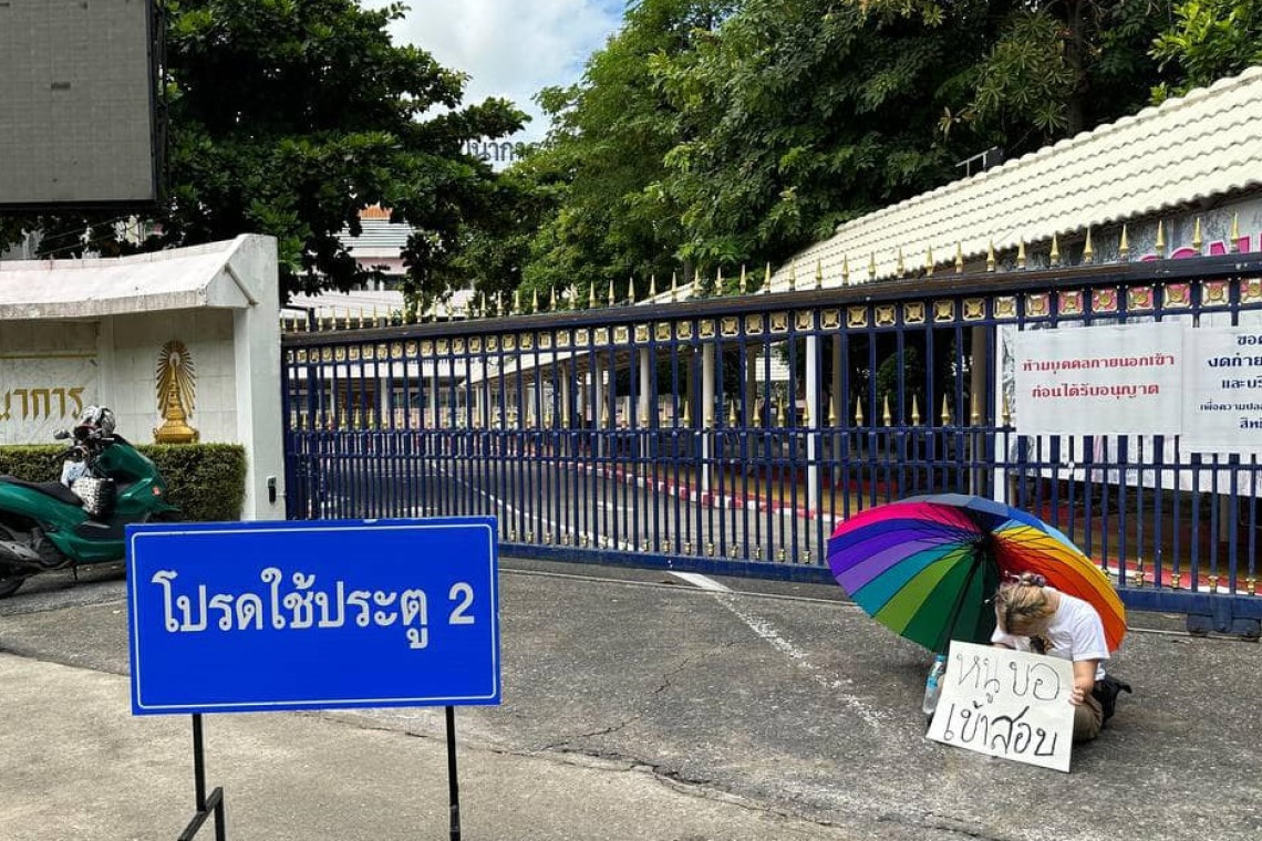 เมื่อวันที่ 18 ก.ย.66 “ทะลุวัง” ได้โพสต์คลิป “หยก” นั่งกางร่มหน้าประตูโรงเรียนเตรียมพัฒน์ เพื่อขอเข้าสอบ แม้จะมีฝนตก พร้อมระบุข้อความว่า