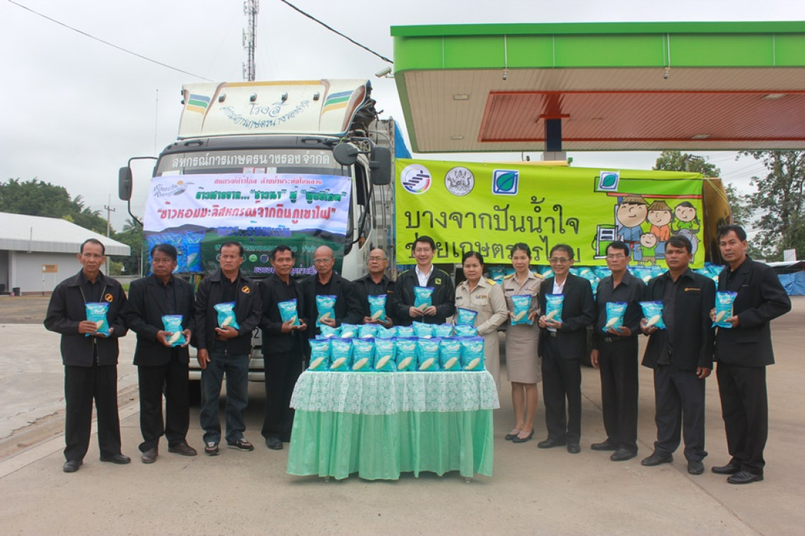 นางอัญชลี ศรีหามาตย์ ผู้อำนวยการกลุ่มส่งเสริมและพัฒนาการบริหารการจัดการสหกรณ์ กล่าวว่า สหกรณ์การเกษตรนางรอง จำกัด มีเป้าหมายกระจายข้าวสารให้ถึงมือผู้บริโภค 2 ช่องทาง คือ กระจายตามสถานีบริการน้ำมันบางจาก และท้องสนามหลวง จำนวน 30,600 ถุงๆ ละ 1 กิโลกรัม มูลค่า 1,009,800 บาท ทั้งนี้ ได้ส่งมอบข้าวแก่บริษัทบางจากปิโตรเลียม จำกัด (มหาชน) รอบแรก จำนวน 16,000 ถุงๆ ละ 1 กิโลกรัม ราคากิโลกรัมละ 33 บาท รวมมูลค่า 528,000 บาท เพื่อจำหน่าย ณ สถานีบริการน้ำมันบางจาก โดยบริษัทฯ เป็นผู้รับภาระค่าใช้จ่ายในการรับซื้อข้าวถุงจากสหกรณ์การเกษตรนางรอง จำกัด ในราคา 33 บาท/ถุง และจำหน่ายข้าวสารบรรจุถุงในราคาถุงละ 30 บาท เพื่อช่วยเหลือชาวนาที่ประสบปัญหาราคาข้าวตกต่ำและช่วยลดค่าครองชีพแก่ผู้บริโภค