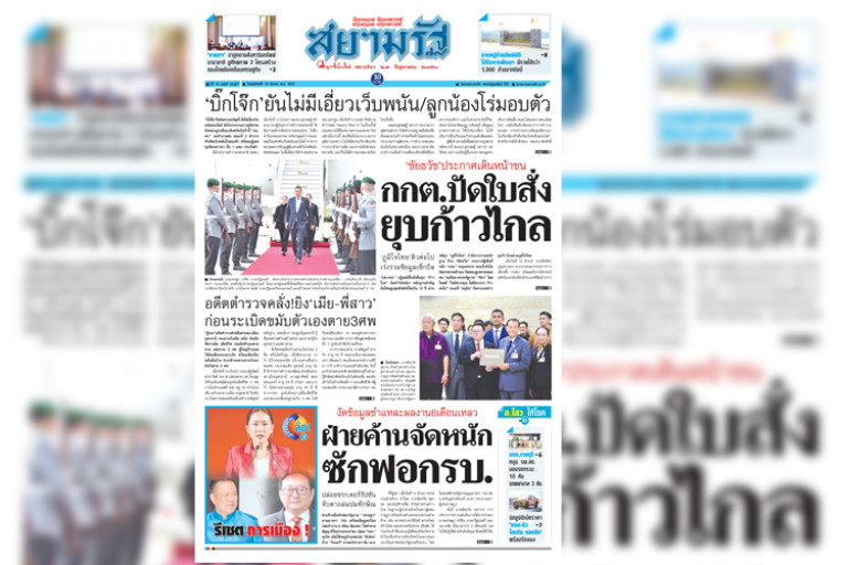 หน้า 1 หนังสือพิมพ์สยามรัฐรายวัน ฉบับวันพฤหัสบดีที่ 14 มีนาคม 2567